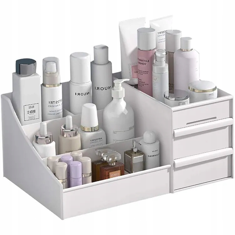 DUŻA SZKATUŁKA ORGANIZER NA KOSMETYKI SZUFLADY XXL Praktyczna szkatułka do przechowywania kosmetyków – idealna organizacja Twojej kolekcji! ??✨ Wyposażona w dwie wysuwane szufladki oraz trzy poziomy półeczek, zapewniających mnóstwo miejsca na kosmetyki i akcesoria. ?️?? Wymiary: wysokość 12,5 cm, szerokość 28,5 cm, głębokość 17,5 cm. Idealnie dopasowana do różnych przestrzeni. ??✅ Solidna konstrukcja i estetyczny wygląd sprawiają, że szkatułka jest nie tylko funkcjonalna, ale również ozdobą Twojego wnętrza. ??? Idealny prezent dla miłośników kosmetyków i osób ceniących porządek. Organizacja nigdy nie była łatwiejsza! ??