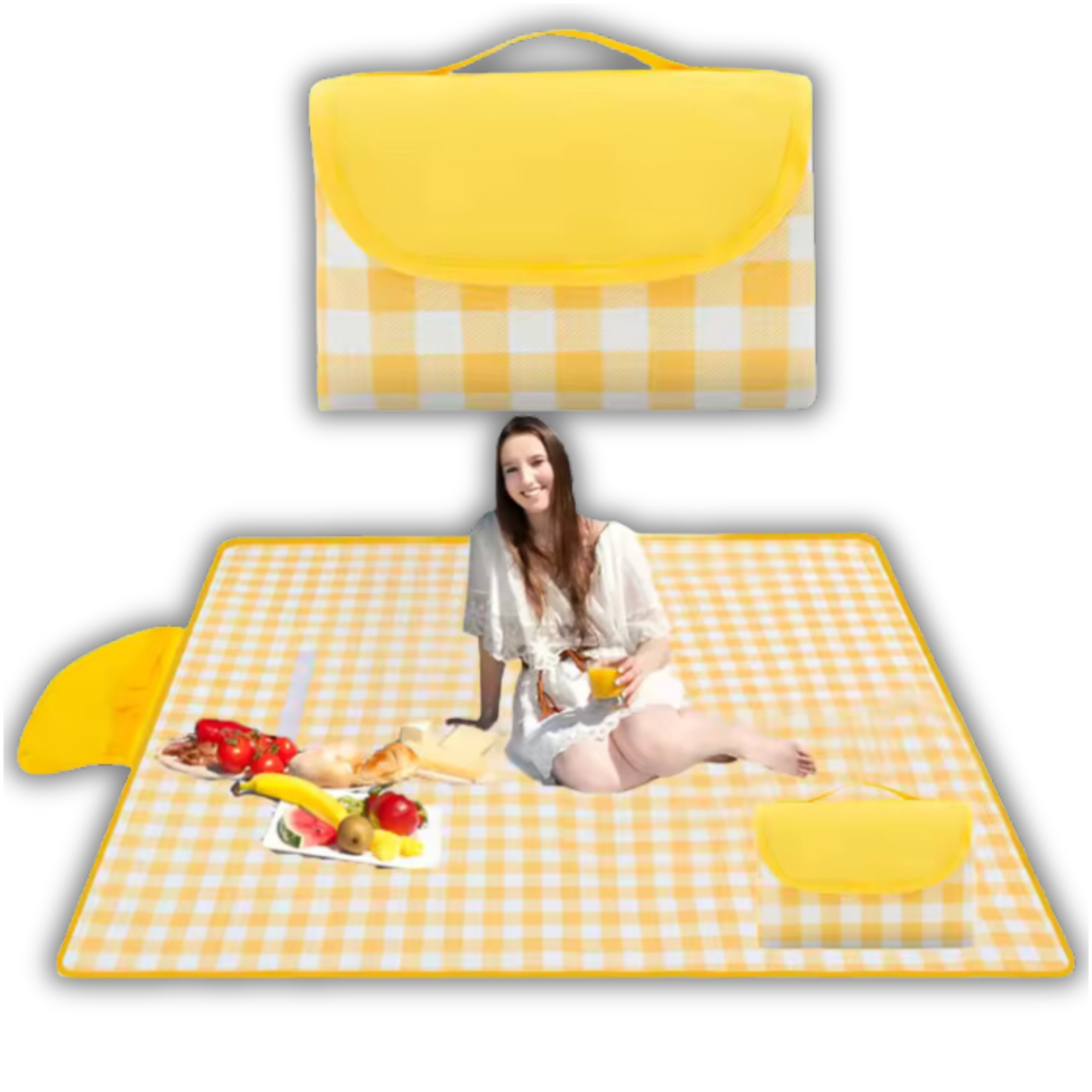 KOC PIKNIKOWY PLAŻOWY BIWAKOWY WODOODPORNY DUŻY MATA Z IZOLACJĄ XXL 200x150Mata plażowa to produkt, który sprawdzi się idealnie podczas biwaku, pikniku, czy odpoczynku na plaży. Dzięki niej każdy wakacyjny wyjazd nad morze, czy też krótki, weekendowy wypad okaże się komfortowy dla Ciebie i dla Twojego dziecka. Mata świetnie sprawdzi się także dla osób uprawiających aktywność sportową na świeżym powietrzu.Jej prosty design sprawia, że przypadnie wszystkim do gustu i świetnie sprawdzi się w każdej sytuacji! Z łatwością na kocu zmieścisz się z rodziną lub przyjaciółmi! Duże wymiary pozwolą na to, aby każdy z was wygodnie usiadł lub położył się, by chłonąć słońce!Mata plażowa sprawdzi się na każdym wyjeździe. Wykonana została z materiału wysokiej jakości, co zapewnia odporność na codzienne użytkowanie i gwarantuje, że mata posłuży Ci przez długi czas. Jest to produkt XXL. Wymiary maty to aż 200 x 150 cm, dzięki czemu może ona pomieścić kilka osób siedzących lub leżących obok siebie. Piknik, biwak, koncert, festiwal muzyczny - mata sprawi, że każdy z Twoich wyjazdów będzie udany! SPECYFIKACJA:Mata: 200cm x 150 cmWymiary po złożeniu: 29cm x 25cm x 3,5cmMateriał zewnętrzny: Tkanina PoliestrowaZapięcie: na rzepPlamoodporność: takUchwyt do przenoszenia: takKolor: Żółto-Biała kratkaBez wątpienia ważną cechą koca jest jego wodoodporność!Dzięki temu możesz zabrać go nie tylko na plażę, ale również na wycieczkę do lasu albo po prostu do ogrodu!Nawet jeśli rozłożysz go na wilgotnej i mokrej powierzchni, nie musisz martwić się, że przemoknie mocząc Twoje ubrania!Możesz być pewnym, że będziesz całkowicie suchy!Nikt nie lubi, gdy wiatr podwiewa i zawija rogi koca, rozrzucając piasek po wszystkim, co na nim leży.Ciągłe poprawianie koca również nie jest zbyt komfortowe.