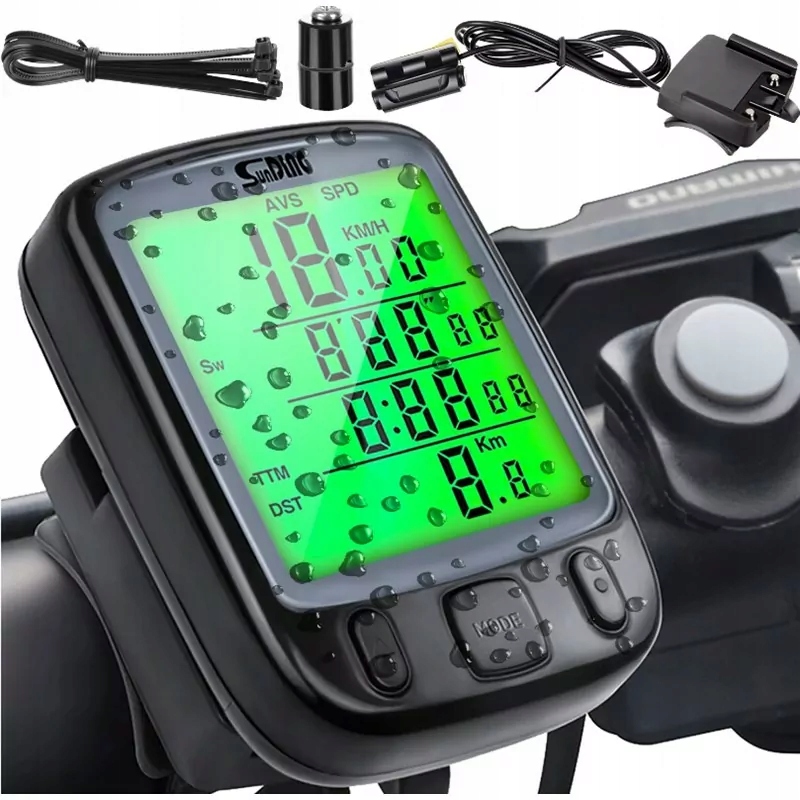 LICZNIK ROWEROWY WODOODPORNY 25 FUNKCJI LCD PODŚWIETLANYDlaczego warto kupić nasz produkt?Licznik rowerowy to urządzenie służące do pomiaru różnych parametrów związanych z jazdą na rowerze, takich jak prędkość, przebyty dystans, czas jazdy, liczba obrotów kół. Licznik rowerowy składa się z dwóch części: nadajnika i odbiornika. Nadajnik jest montowany na widelcu lub ramie roweru, a odbiornik na kierownicy lub trzonie. Nadajnik emituje sygnał, który jest odbierany przez odbiornik, co umożliwia pomiar parametrów.✅SPECYFIKACJA TECHNICZNAMarka: SundingLiczba funkcji: 25Zakres pomiaru temperatury: -20°C – 70°C / -4°F – 158°FKolor: CzarnyWyświetlacz: LCDWymiar wyświetlacza: 1,44"Rodzaj podświetlenia: LEDKolor podświetlenia: ZielonyWodoodporność: TakZasilanie: Bateryjne CR2032 (Bateria w zestawie) ✅25 WBUDOWANYCH FUNKCJILicznik rowerowy posiada aż 25 wbudowanych funkcji min:⭐ SPD - aktualna prędkość⭐ ODO – całkowity przebieg⭐ DST – przebyty dystans⭐ MXS - prędkość maksymalna⭐ AVS - prędkość średnia⭐ TTM - czas wyjazdu⭐ TM - czas częściowy wyjazdu⭐ RAT - całkowity czas wyjazdów⭐ CLK - zegar 12H/24H⭐ SW - stoper⭐ TEMPERATURE – termometr⭐ COMPACTOR – porównanie aktualnej prędkości do średniej⭐ TM UP - licznie czasu do ustawionej wartości⭐ TM DN - odliczanie czasu do ustawionej wartości⭐ TRIP UP - liczenie dystansu do ustawionej wartości⭐ TRIP DN - pozostały dystans do ustawionej wartości⭐ SLEEP MODE - tryb uśpienia (oszczędzanie baterii)⭐ Alarm przeglądu⭐ Przypomnienie o oliwieniu⭐ Ostrzeżenie o nadmiernej prędkości⭐ Wprowadzenie wielkości opony⭐ Informacja o słabej baterii⭐ Automatyczne podświetlenie ✅DO KAŻDEGO RODZAJU JEDNOŚLADULicznik rowerowy idealnie sprawdzi się do:✳️ rowerów✳️ skuterów✳️ motocykli✳️ hulajnóg ✅ZAWARTOŚĆ ZESTAWU♥️ Licznik♥️ Podstawa z kablem♥️ Czujnik magnetyczny♥️ Opaski mocujące♥️ Instrukcja