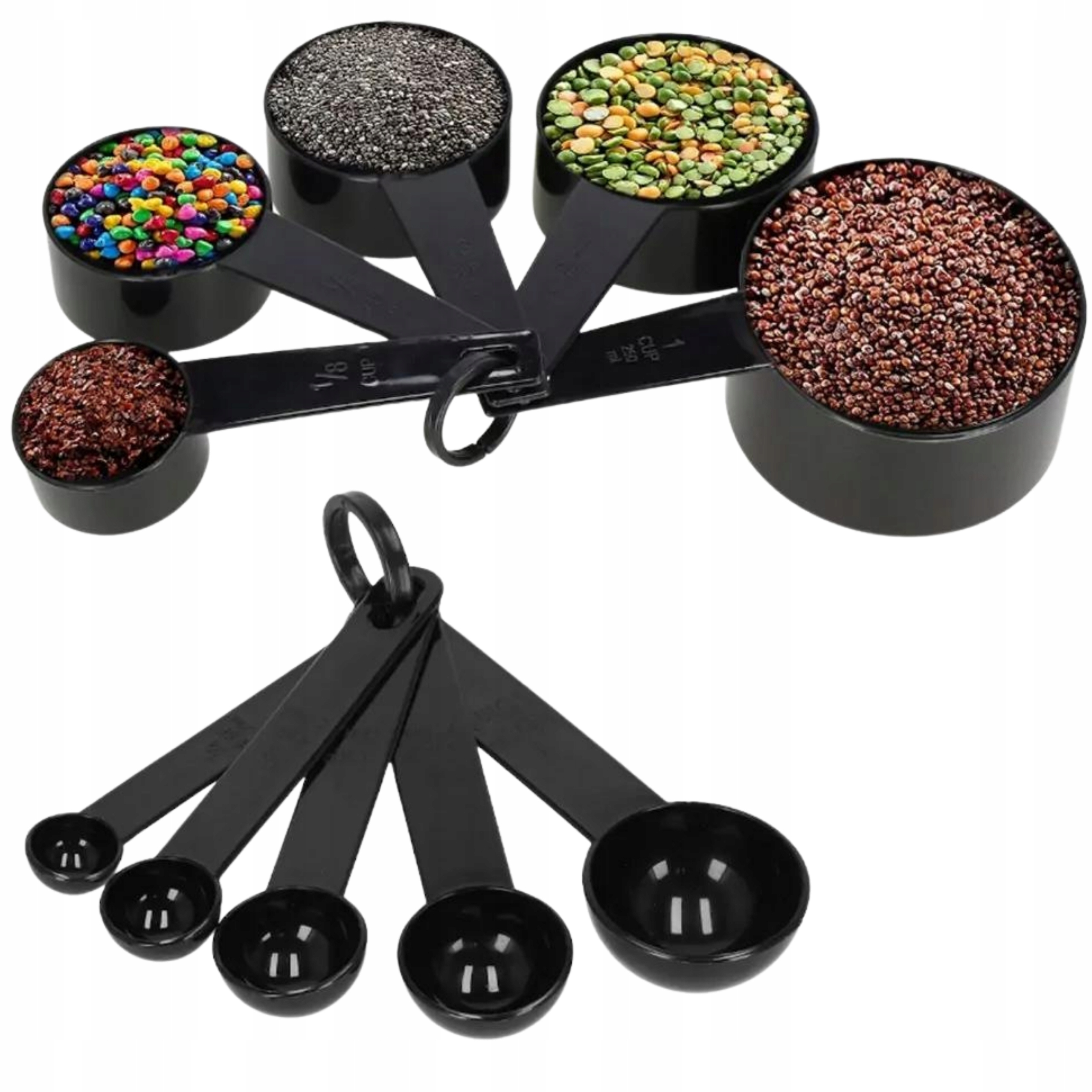 MIARKI KUCHENNE ZESTAW MIAREK KUBKI ŁYŻKI KOMPLET 10 SZTUK✅ Cechy produktu:✅ Fabrycznie nowy, wysokiej jakości.✅ Zestaw zawiera różne rozmiary miarek, pozwalają na dopasowanie do każdej sytuacji,✅ Kompaktowy-poszczególne elementy mogą być przechowywane jeden w drugim,✅ Wspaniałe rozwiązanie do małych kuchni z ograniczoną przestrzenią,✅ Łatwe w utrzymaniu w czystości,✅ Żywe kolory miarek.✅ Specyfikacja:☑️ Materiał: tworzywo sztuczne,☑️ Kolor: Czarny✅ Zestaw zawiera:☑️ 10 miar w różnych rozmiarach. Zestaw 10 sztuk:✅ KUBECZKI:250 ml,125 ml,80 ml,60 ml,30 ml,✅ ŁYŻECZKI:15 ml,7.5 ml,5 ml,2.5 ml,1.25 ml.