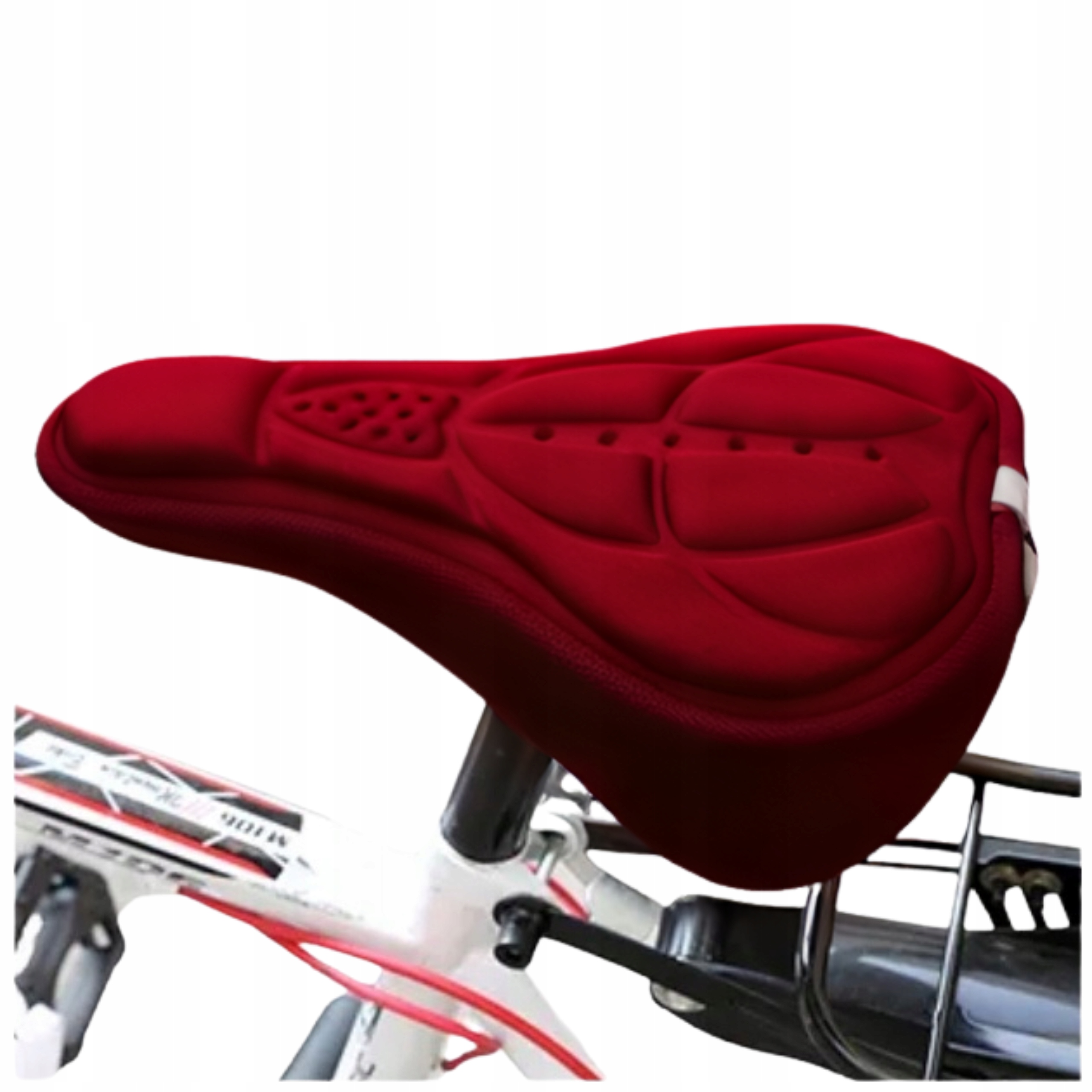 NAKŁADKA ŻELOWA NA SIODEŁKO ROWEROWE POKROWIEC ŻELSpecyfikacja:Materiał (wierzch): lycra,Materiał (spód): poliester,Materiał (siedzisko): żel i pianka,Wymiary: 18 cm x 28 cm x 4 cm,Waga: 58 g,Odblask: tak (tył),Opakowanie: foliowe.DOSTĘPNY KOLOR: CZERWONY Pokrowiec na siodełko został wypełniony mieszanką amortyzującą pianki z żelem. Nakładka zapewnia wygodną oraz komfortową jazdę. Profilowane wypełnienie zapewnia większą wygodę niż zwykłe nakładki bez profilowania.Pasek ściągający zapewnia idealne trzymanie wokół siedzenia oraz łatwy montaż i demontaż!