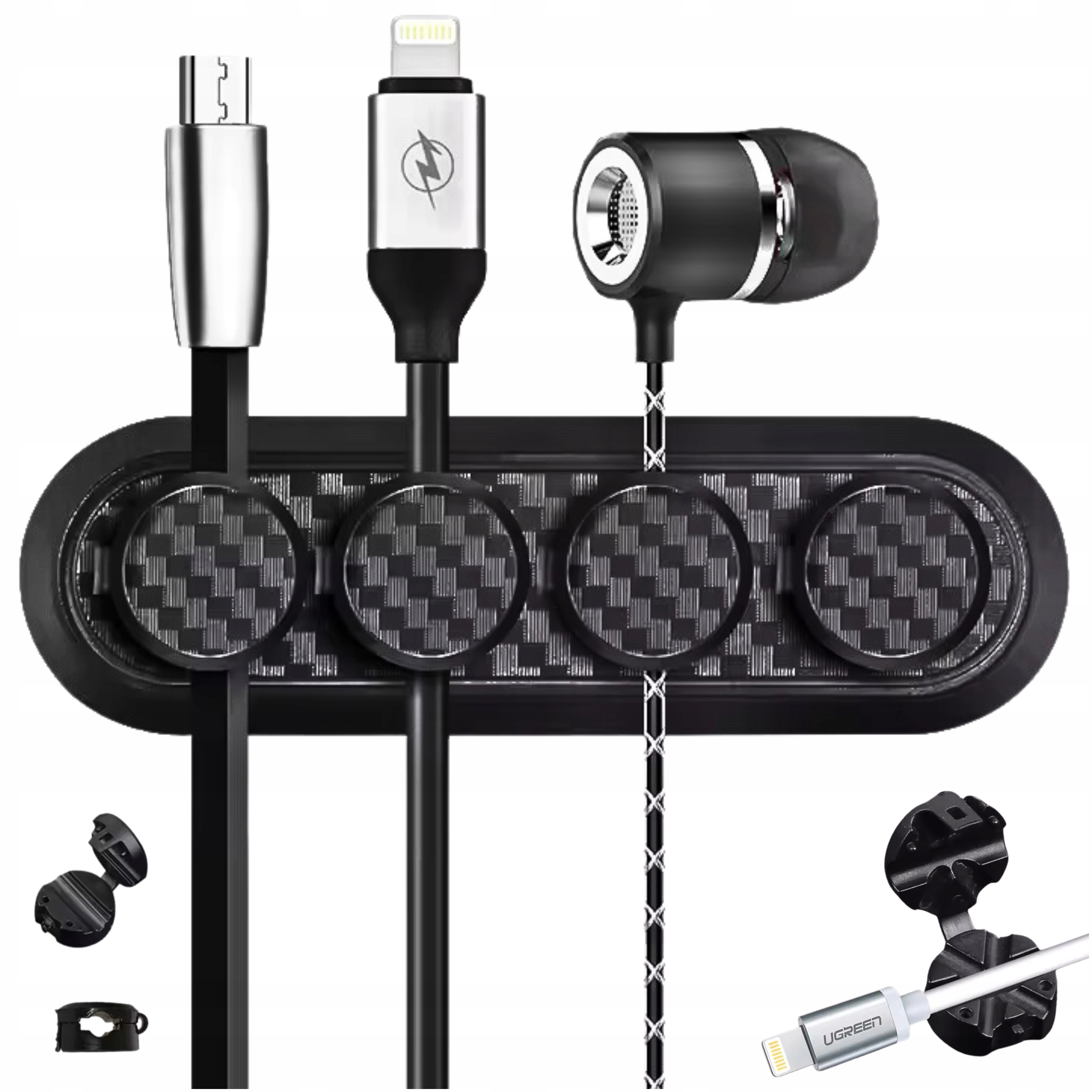ORGANIZER DO KABLI PRZEWODÓW DO BIURKA UCHWYT MAGNETYCZNY PROWADNICA KLIPSUłatw sobie życie z naszym praktycznym organizerem do kabli! Ten innowacyjny gadżet pomoże Ci raz na zawsze zapomnieć o poplątanych kablach. Wyposażony w magnetyczną podstawkę i specjalne uchwyty, zapewnia stabilne i uporządkowane przechowywanie wszystkich przewodów w jednym miejscu. Co ważne, magnes nie wpływa na jakość ładowania, dzięki czemu możesz korzystać z urządzeń bez obaw. Kluczowe CechyPraktyczność: Organizer pozwala na przechowywanie kabli w jednym miejscu, eliminując problem poplątanych przewodów.Magnetyczna Podstawka: Silny magnes w podstawce zapewnia stabilne mocowanie uchwytów, bez wpływu na jakość ładowania.Specjalne Uchwyty: Uchwyty zaprojektowane do trzymania kabli w różnych rozmiarach, utrzymują je w porządku i łatwo dostępne.Estetyka: Elegancki design pasuje do każdego biura i wnętrza, utrzymując przestrzeń w schludnym wyglądzie.Specyfikacja TechnicznaMateriał: Wysokiej jakości tworzywo sztuczne i magnesKolor: CzarnyZestaw zawiera: Organizer z magnetyczną podstawką, zestaw uchwytów (4szt) Korzyści z UżytkowaniaPorządek i Organizacja: Koniec z poplątanymi kablami, łatwy dostęp do każdego przewodu.Bezpieczeństwo: Stabilne mocowanie kabli, zmniejsza ryzyko przypadkowego uszkodzenia przewodów.Łatwość Montażu: Prosta instalacja bez użycia narzędzi, wystarczy umieścić podstawę i zaczepić uchwyty.Wielofunkcyjność: Idealny zarówno do domowego biura, jak i do profesjonalnych zastosowań.Nasz organizer do kabli z magnetyczną podstawką to idealne rozwiązanie dla każdego, kto ceni sobie porządek i funkcjonalność. Dzięki nowoczesnemu designowi i wysokiej jakości materiałom, produkt ten sprawdzi się w każdym wnętrzu, zapewniając komfort i wygodę użytkowania.