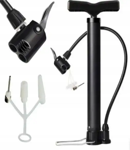 POMPKA ROWEROWA 5w1 Z WĘŻYKIEM DO PIŁEK ROWERUDlaczego warto kupić nasz produkt ?✅ UNIWERSALNE KOŃCÓWKI 5 w 1 – DO WSZYSTKIEGO!✅ Do każdego rodzaju wentla✅ Pompka dzięki której napompujesz wszystkie opony, nie ważne czy rowerowe czy samochodowe, piłki itp.✅ Końcówka węża pompki POSIADA SPECJALNY KLIPS pozwalający na zapięcie węża na wentyl i kontynuowania pompowania bez niczyjej pomocy✅ Wężyk o długości 40 cm z końcówką do wentyli samochodowych oraz wentyli rowerowych i igłą.✅ Maksymalne ciśnienie 120PSI (8 bar) Dane techniczne:Wysokość złożonej pompki: 32 cmSzerokość uchwytu: 13 cmSzerokość pompki: 3,5 cmKilka rodzajów końcówek:Wentyl samochodowyWentyl rowerowyIgła do piłek2 końcówki do materacy