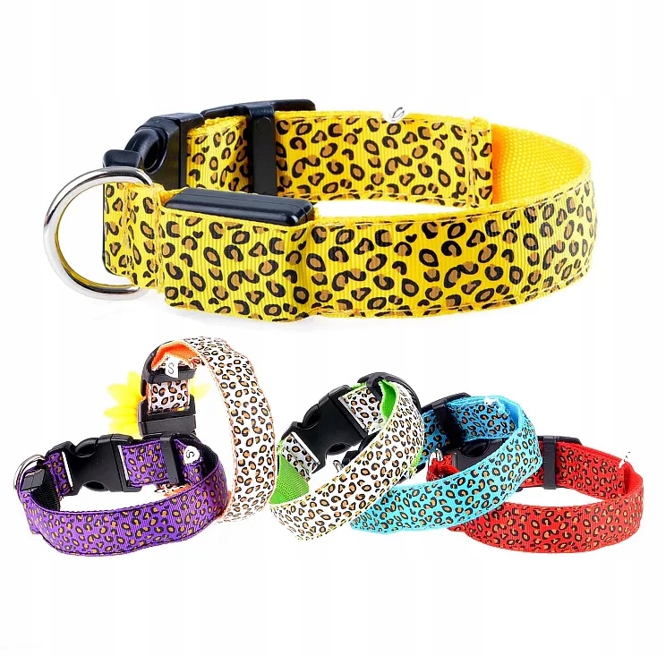 ŚWIECĄCA OBROŻA LED DLA PSA KOTA REGULOWANA PANTERKA 58 CM
