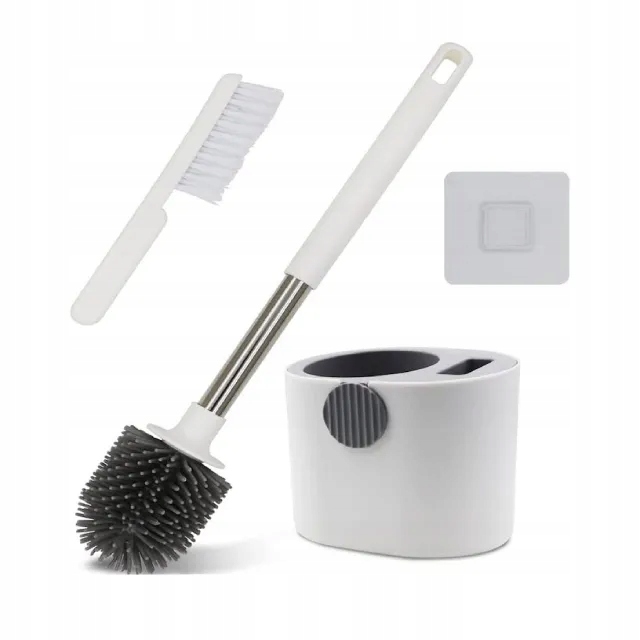 SZCZOTKA DO WC SILIKONOWA wisząca OCIEKACZ toaletyDlaczego warto kupić nasz produkt?✅ Dwie szczotki w kompaktowym pojemniku✅ Do postawienia lub zawieszenia na ścianie✅ Wyciągana podstawka pojemnika✅ Docierają w trudno dostępne miejsca✅ Higieniczna w zastosowaniuDOSTĘPNY KOLOR: SZARY Higieniczna, wytrzymała i estetyczna!✅ Materiał: silikon i tworzywo sztuczne✅ Wymiary:wysokość: 44 cmszerokość: 14 cmgłębokość: 11 cm✅ Mocny haczyk samoprzylepny w zestawie - dzięki czemu szczotki mogą być powieszone na ścianie, jak i położone na podłodze✅ Wyciągana podstawka szczotki z możliwością wylania brudnej wody i wyczyszczenia jej✅ 2 szczotki w 1 pojemniku - pozwalają z łatwością wyczyścić każdy zakamarekdługa (42 cm długości) z silikonową końcówką,krótka (19 cm długości) wąska z włosiem z tworzywa