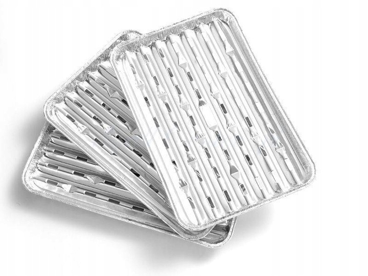 Tacki aluminiowe do grilla duże świetnie nadają się do pieczenie mięs, ryb i warzyw umożliwiają przyrządzanie soczystych, równomiernie przypieczonych potraw chronią grill przed zabrudzeniemprzepuszczają dym, który nadaje potrawom wspaniały smak i aromat ograniczają spalanie się tłuszczu na ogniu, dzięki czemu przygotowywane potrawy są zdrowsze*Zdjęcie produktu ma charakter poglądowy. Różnice mogą dotyczyć jedynie kwestii wizualnej opakowania produktu.