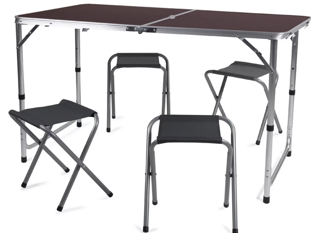 zestaw stolik stół turystyczny składany kempingowy duży 4 krzesła walizka brąz
