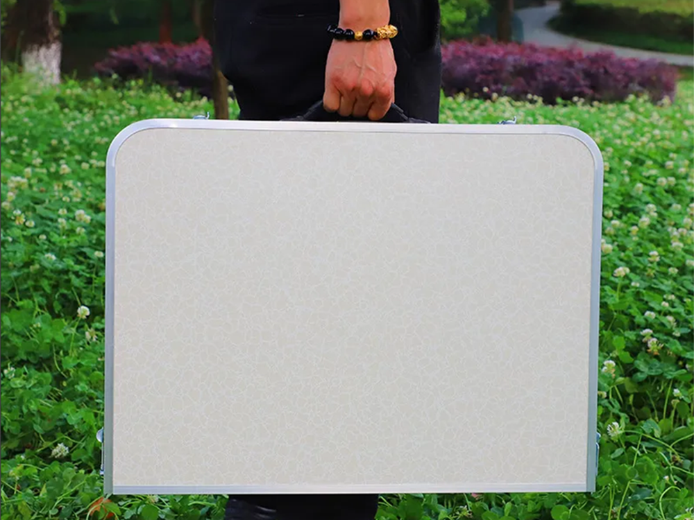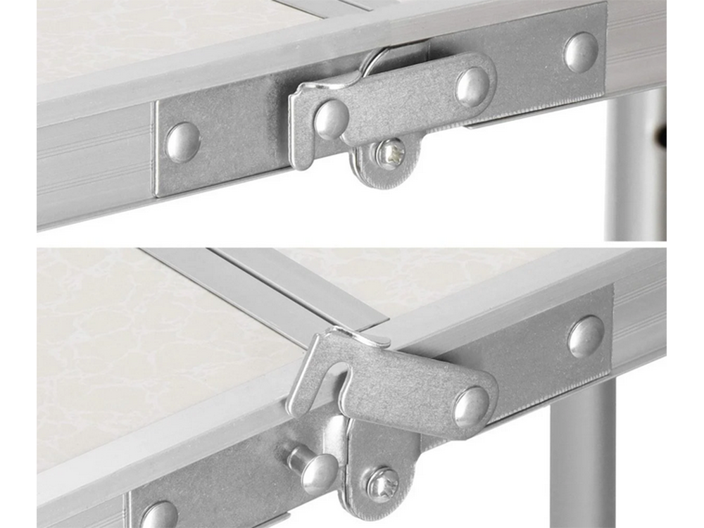 ZESTAW STOLIK STÓŁ TURYSTYCZNY SKŁADANY KEMPINGOWY DUŻY 4 KRZESŁA WALIZKASkładany stolik turystyczny ma aluminiową ramę, co zapewnia lekkość i wytrzymałość. Na ramie znajduje się blat wykonany z trwałego i łatwego w czyszczeniu tworzywa sztucznego. Stolik turystyczny składany może być wykorzystywany w różnych sytuacjach, takich jak piknik, kemping, imprezy plenerowe, czy podczas grilla ze znajomymi. Jest to również idealny wybór do użytku w ogródku, na tarasie czy na balkonie.Zestaw stolik turystyczny z krzesełkami jest bardzo łatwy w użyciu. Można go szybko złożyć i rozłożyć, dzięki czemu jest bardzo praktyczny w podróży. Po złożeniu zajmuje niewiele miejsca, co ułatwia jego przechowywanie i transport.Stolik ma regulowaną wysokość nóg, co sprawia że można go dopasować do indywidualnych potrzeb.Cały zestaw składa się do jednej zamykanej walizki, którą można przenosić dzięki mocnej rączce.Po rozłożeniu stolika, można zamocować w blacie parasol o średnicy rurki około 2,5cm✅ Wysoka jakość wykonania✅ Na kemping✅ Stabilny✅ Wytrzymały✅ Składany✅ Regulowana wysokość✅ Antypoślizgowe nóżki✅ Miejsce na parasol✅ Grubość rurki: 1,5cm✅ Waga zestawu: 6,7kg✅ Kolor blatu stolika: kremowy✅ Kolor siedziska krzesełek: kremowyWYMIARY STOŁU:✅ Szerokość: 60cm✅ Długość: 120cm✅ Wysokość regulowana: 55cm, 62cm, 70cmWYMIARY KRZESEŁKA:✅ Wysokość: 36cm✅ Szerokość: 33cm✅ Szerokość materiału: 22cm